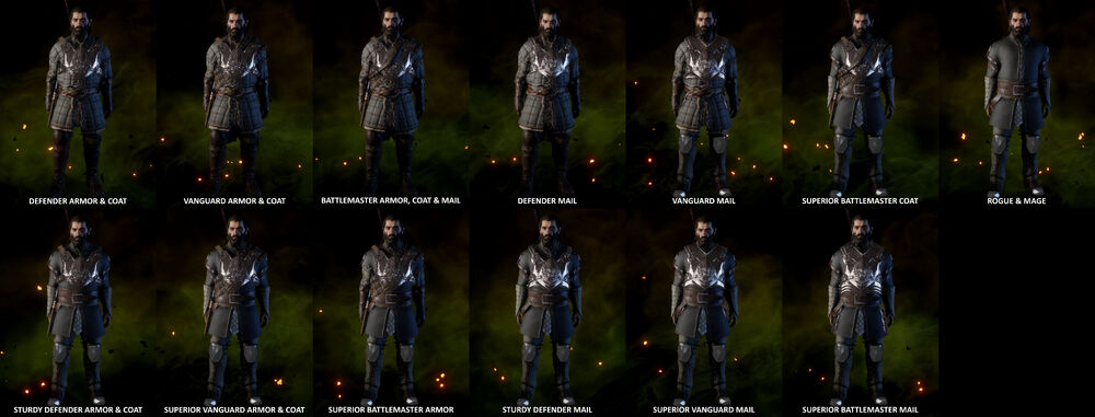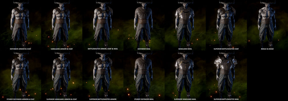 For regular clothing and non-enchanted armor, I would like to be able to choose from a number of basic options with a fair bit of variety there, so rather than 1 suit of chainmail with 1 look, there might be a dozen. For clothing there might be 100 options.