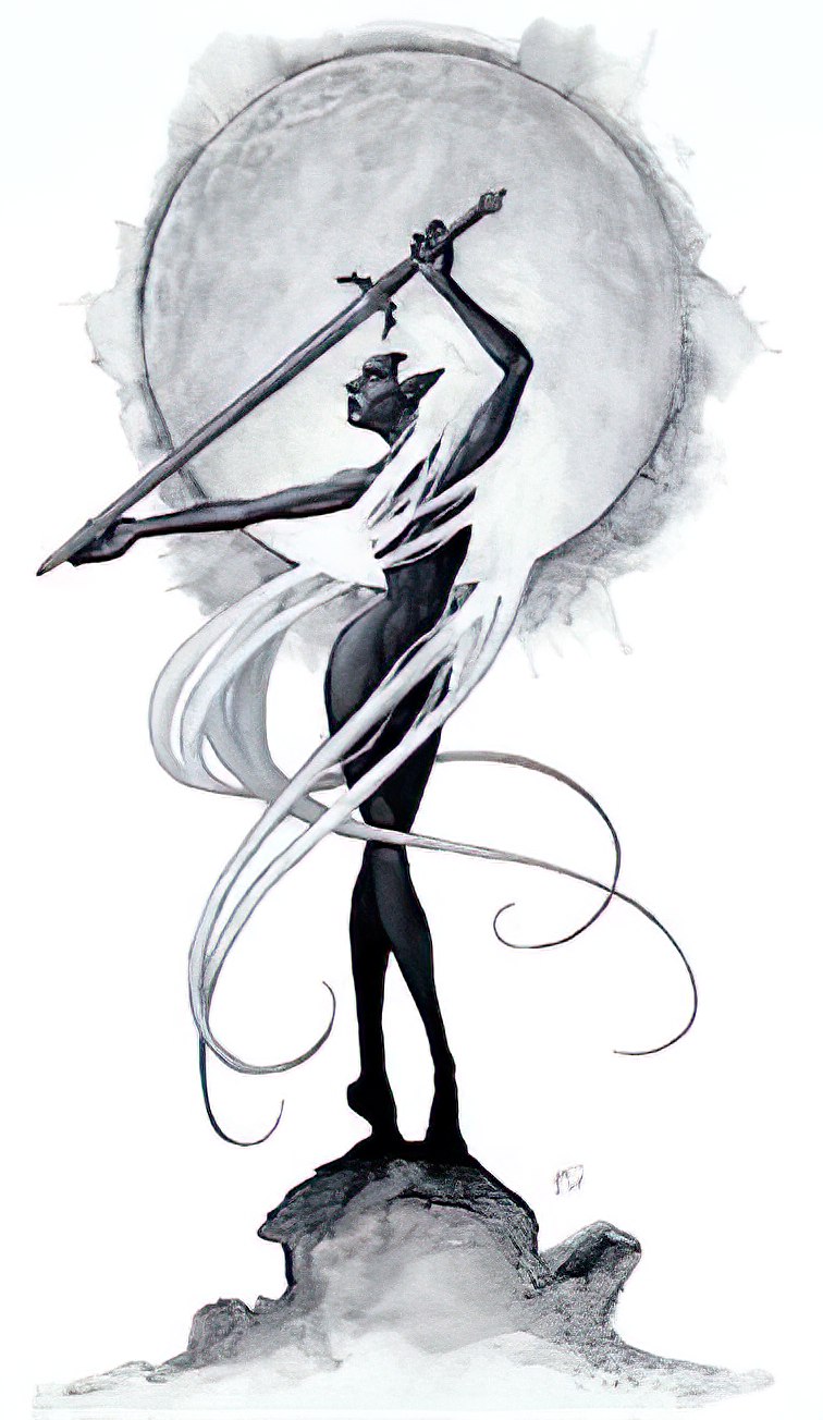 After playing a Cleric of Lolth I'm about to start my next playthrough for the most fascinating goddess, Eilistraee. Playing as her devoted Sword Dancer, specifically a female Seldarine Drow War Cleric multiclassed into Bard and Fighter. And to make things even more interesting I figured why not have the Guardian take the form of Eilistraee herself. The Goddess of beauty, song, dance, freedom and moonlight appearing in her very dreams.